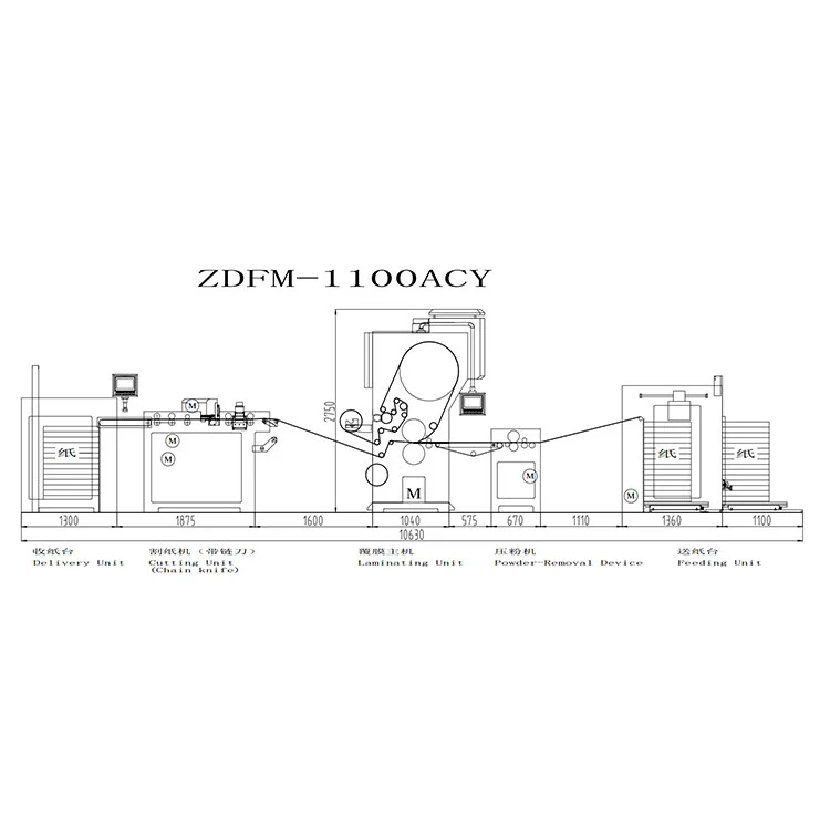 Решение ZDFM-ACY: блок удаления порошка нашего автоматического ламинатора с цепным ножом гарантирует, что поверхность с покрытием будет кристально чистой и без каких-либо дефектов; Блок цепного ножа обеспечивает точную обрезку кромок толстой ПЭТ-пленки или металлической пленки, как ножом.